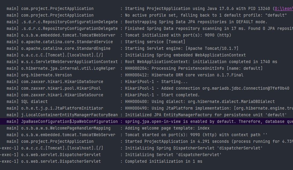 이렇게되면 JPA와 JDBC를 통한 MariaDB연동이 끝났다. 지금부터는 Entity클래스를 만들어 새로운 테이블을 만들어보자