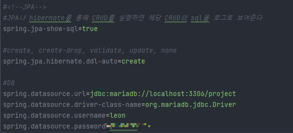 2.application.properties에 jpa및 jdbc관련 설정을 추가해준다.
